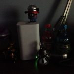The iPhone 4S. This is the same shot of desk junk as before, just with the lights turned out.